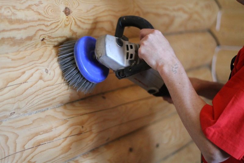 Эта процедура выполняется для возвращения бревенчатому зданию нового вида и для придания лоска, если оно только что отстроено. Для шлифовки деревянного дома мастера применяют углошлифовальные машины со специальными насадками - абразивными кругами. В процессе чистки с дерева убираются небольшие дефекты, зачищаются неровные участки, с которыми не справилось оборудование для первичной обработки.